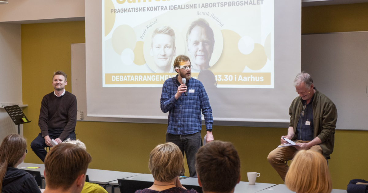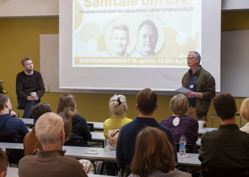 Om eftermiddagen deltog folketingspolitiker Peter Kofod og valgmenighedspræst Henrik Højlund i spændende debatsamtale om abortspørgsmålet foran en fyldt sal.