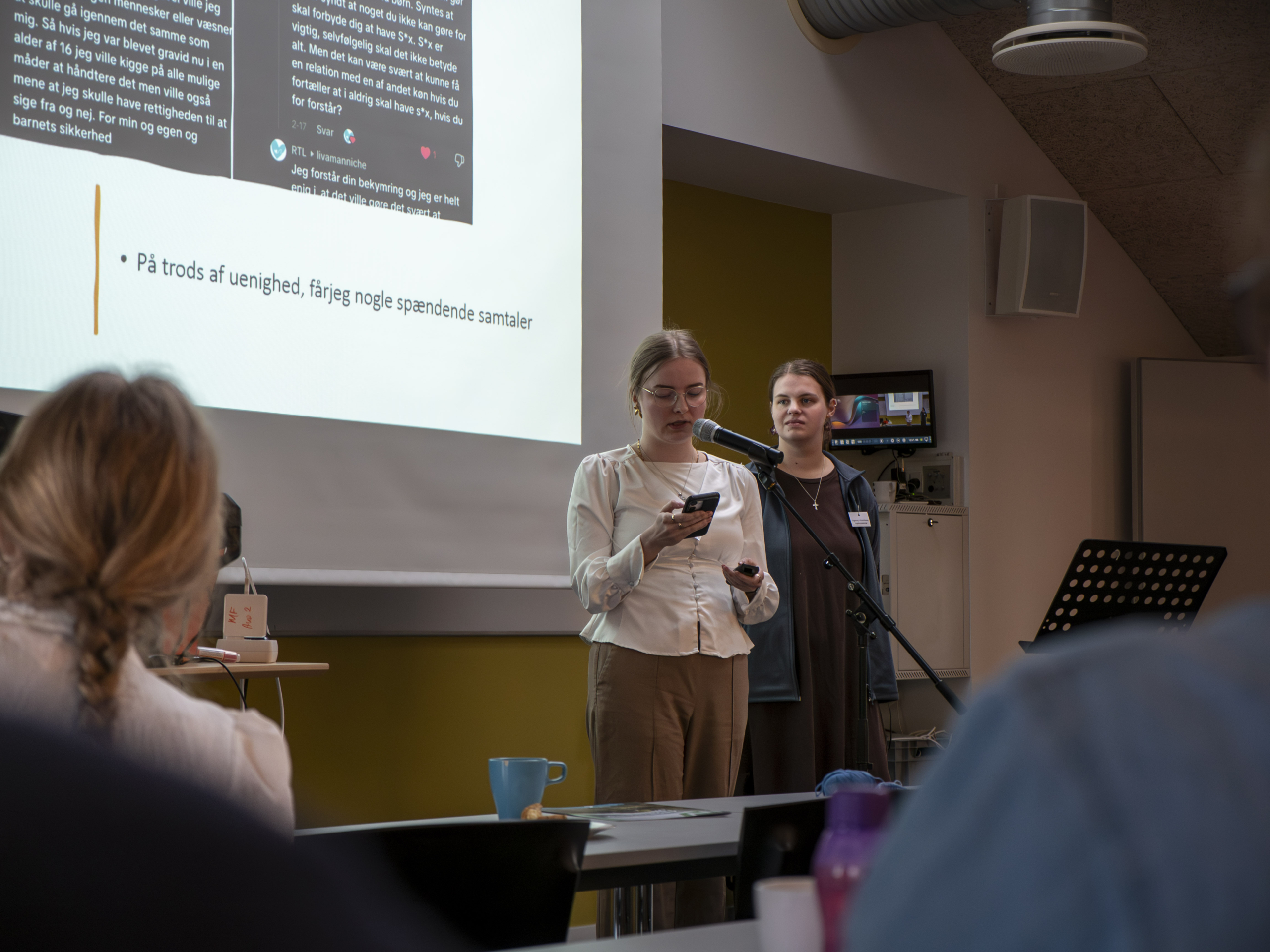 Foreningens mange arbejdsgrene og projekter blev livligt præsenteret. Abortliniens nye leder, Maria Kofod Primdahl, blev budt velkommen, og så blev der taget afsked med den afgående leder Marianne Jørgensen. Også to afgående bestyrelsesmedlemmer, Karina Borcher Andersen og Pauline Balaban blev der sagt tak til.
